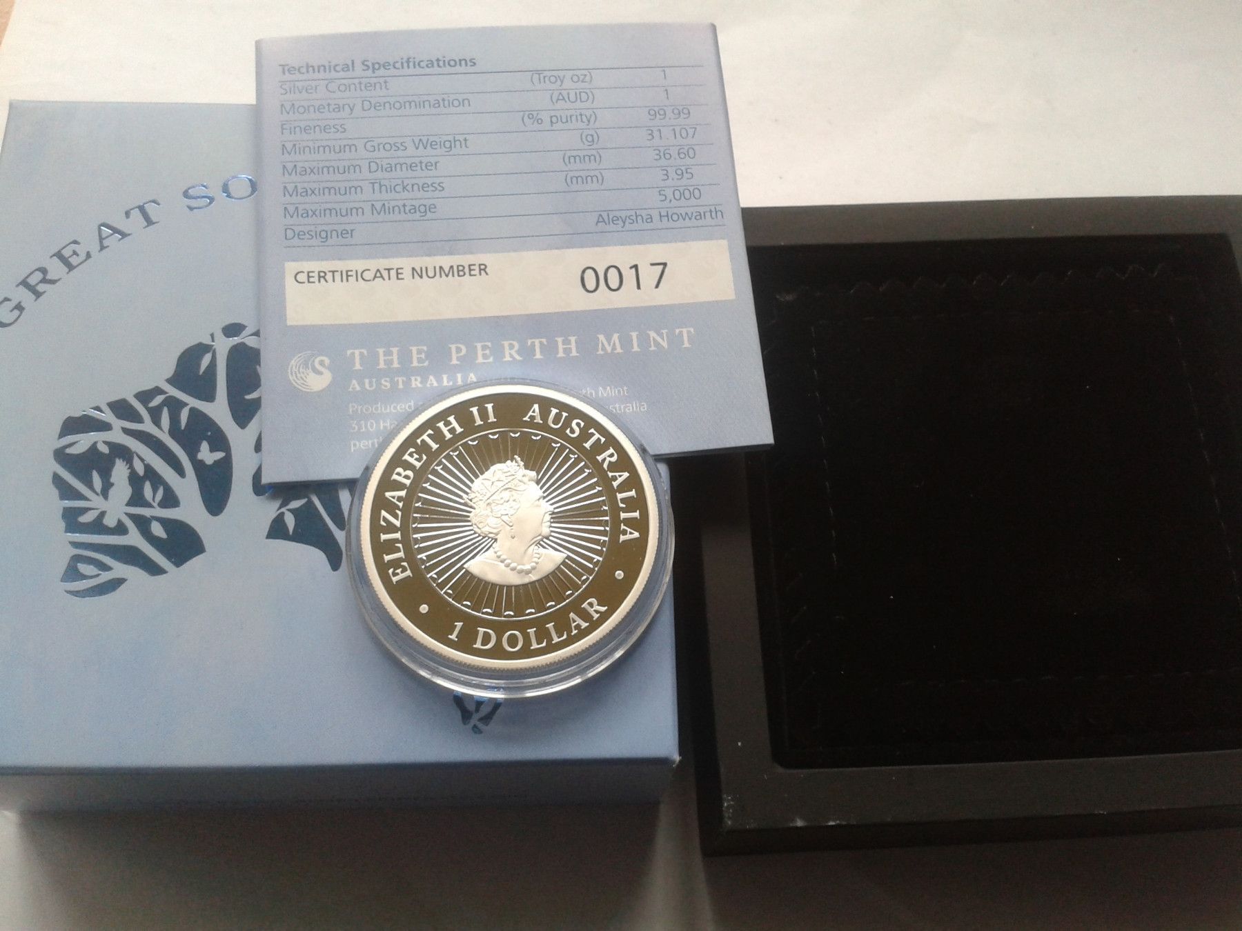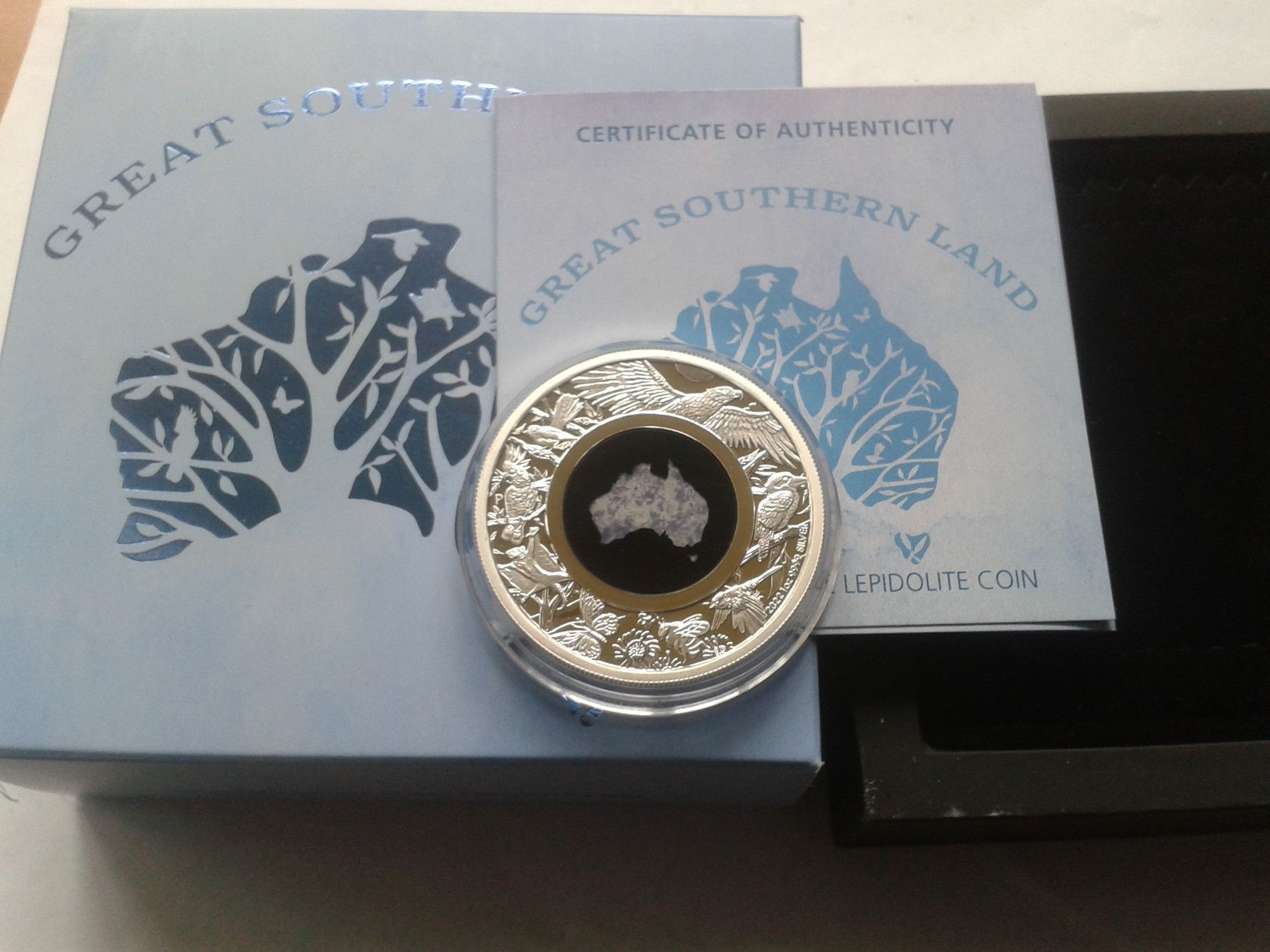 1 Dollar 2022 1$ 2022 PP Australien great southern land 1 Unze Silber mit Lepidolith