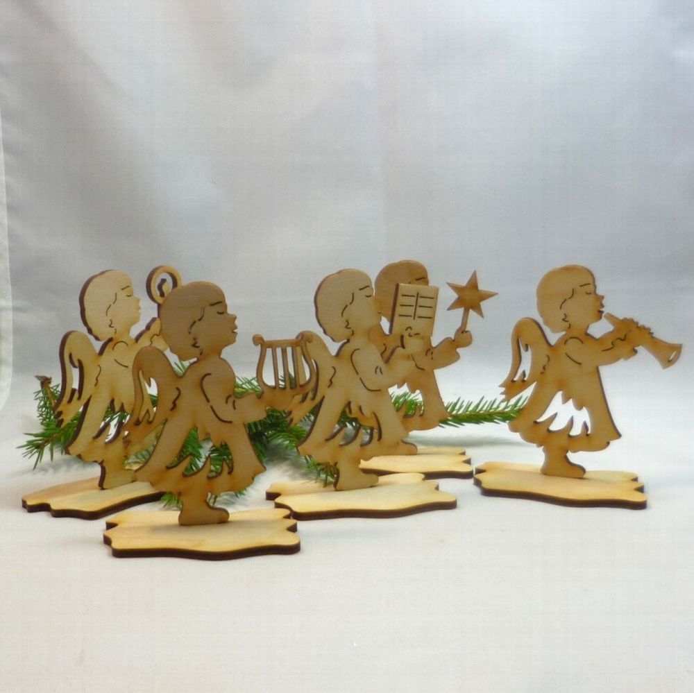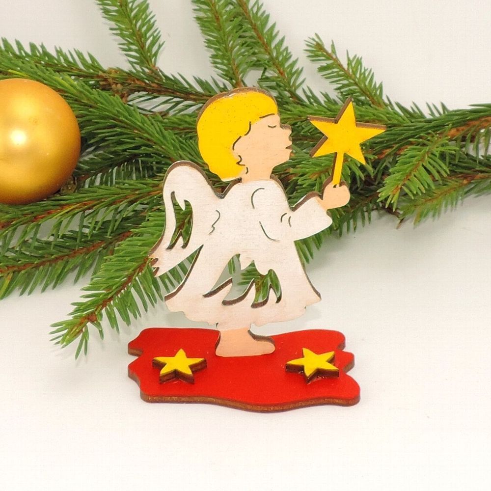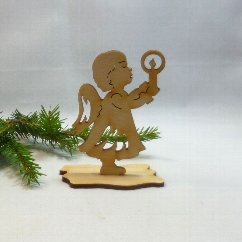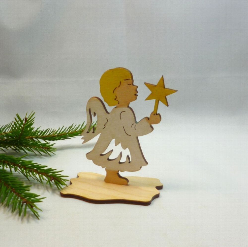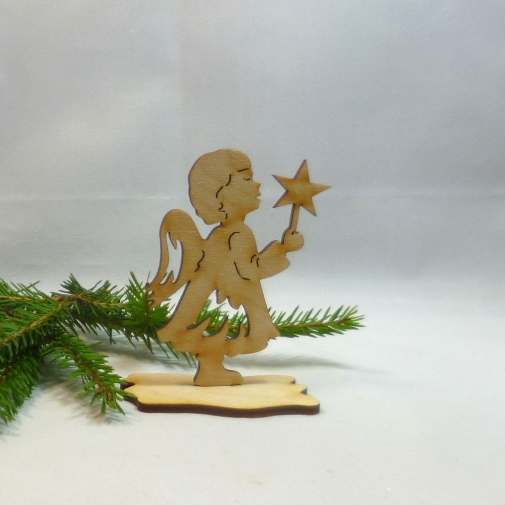 1 Engel Holz stehende Engel mit Glitzer o. Natur Deko Advent DIY Holzfigur