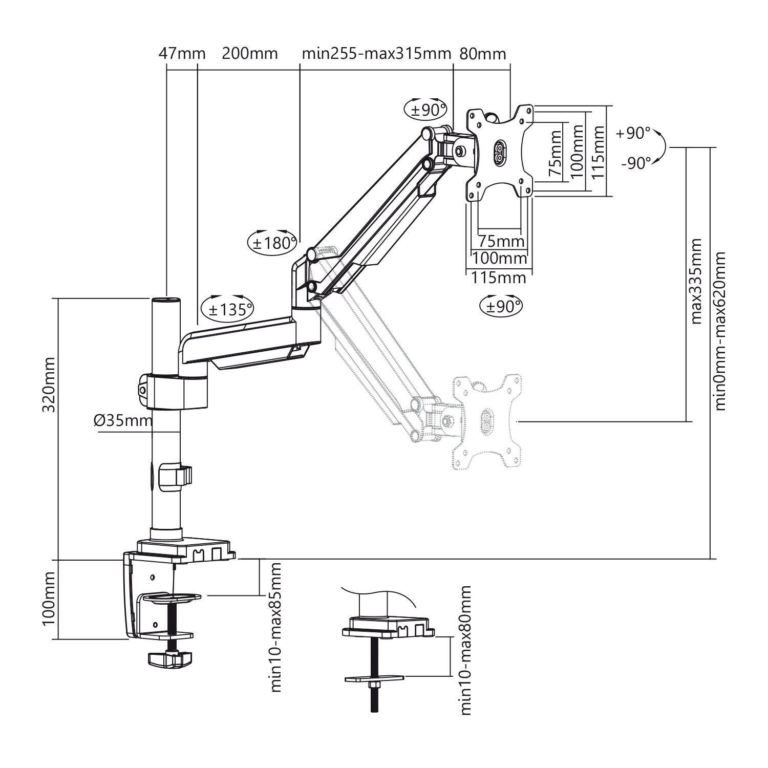 1-Fach Monitorhalterung mit Gasfeder Tischhalterung Höhenverstellbar Schwenkbar