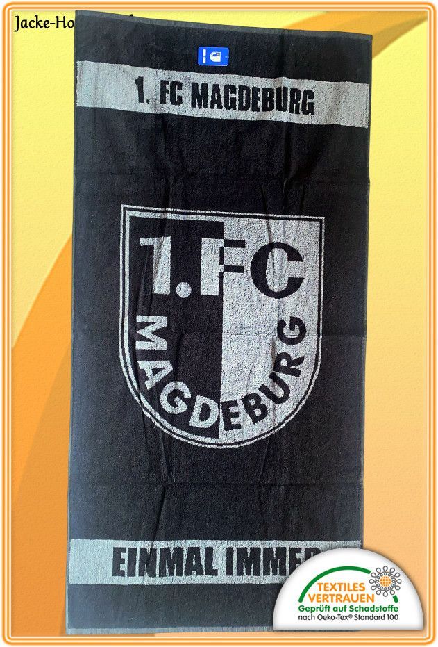 1. FC Magdeburg Duschtuch Badetuch Badestola Schwarz Weiß Logo Gr: 70x140 cm NEU