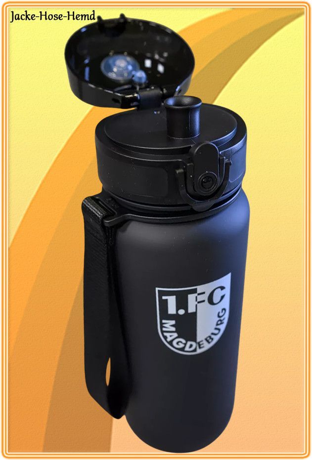1. FC Magdeburg Trinkflasche Flasche Sportflasche Schwarz Logo Wappen 650ml NEU