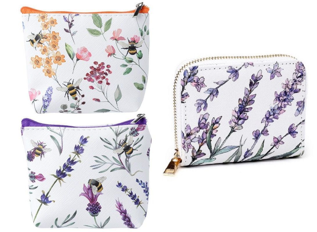 1 Geldbörse Blumen + Bienen, Lavendel, Geldbeutel Blume Blüten Biene Garten