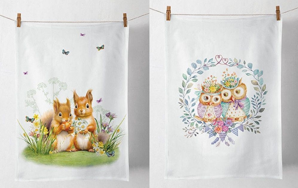 1 Geschirrtuch Eichhörnchen o. Eulen Geschirrtücher Mitbringsel Geschenkidee Tiere