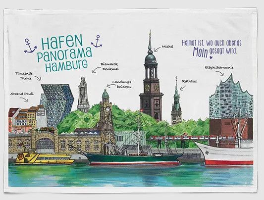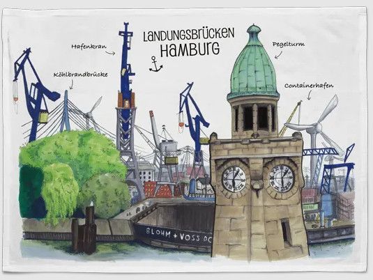1 Geschirrtuch Hamburg Hafen Landungsbrücken Geschirrtücher Mitbringsel Geschenkidee