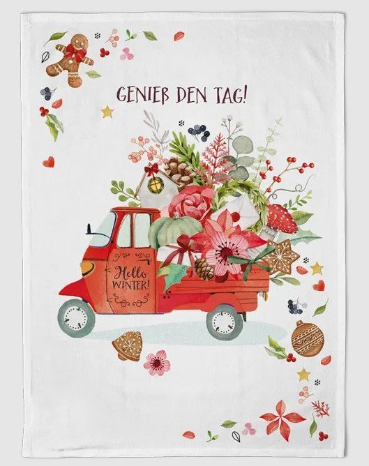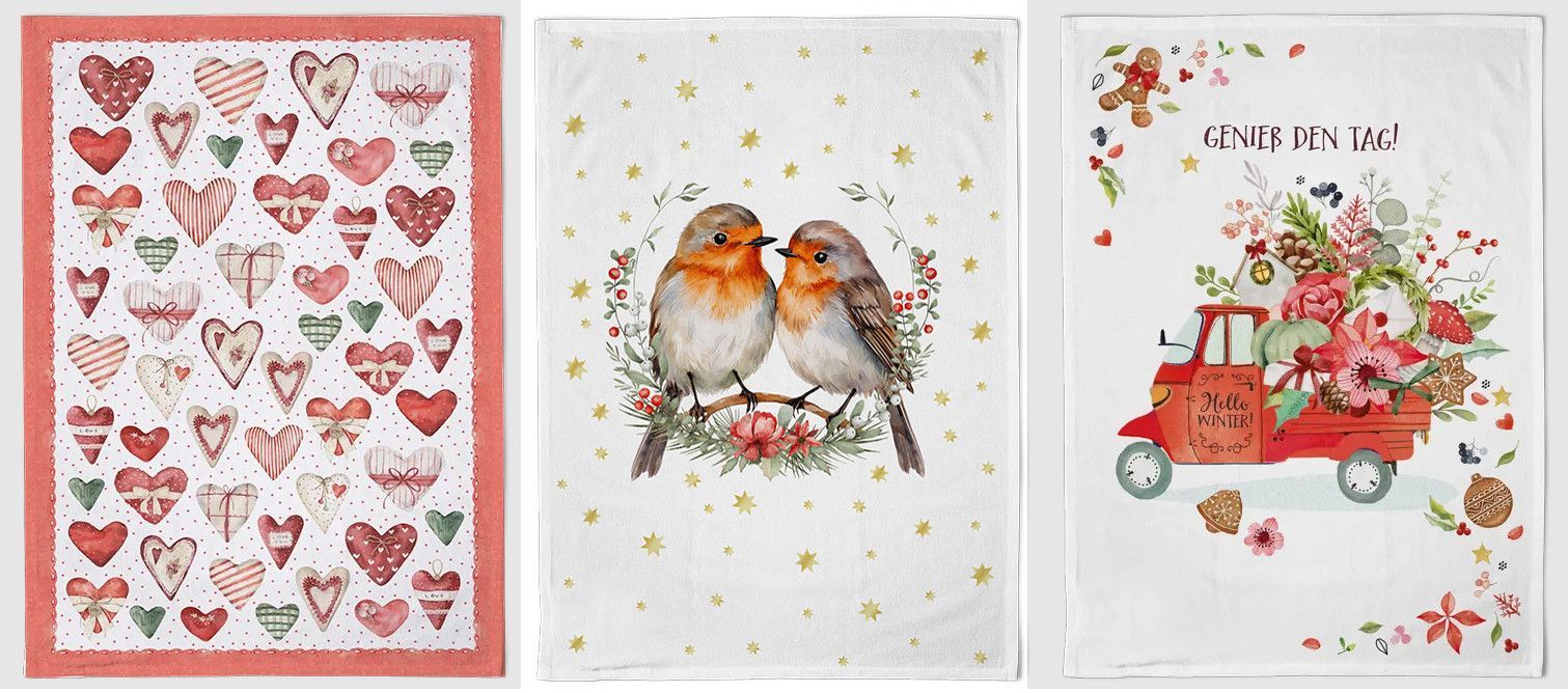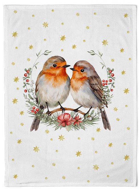 1 Geschirrtuch Herzen Rotkehlchen Blumen Geschirrtücher Mitbringsel Geschenkidee
