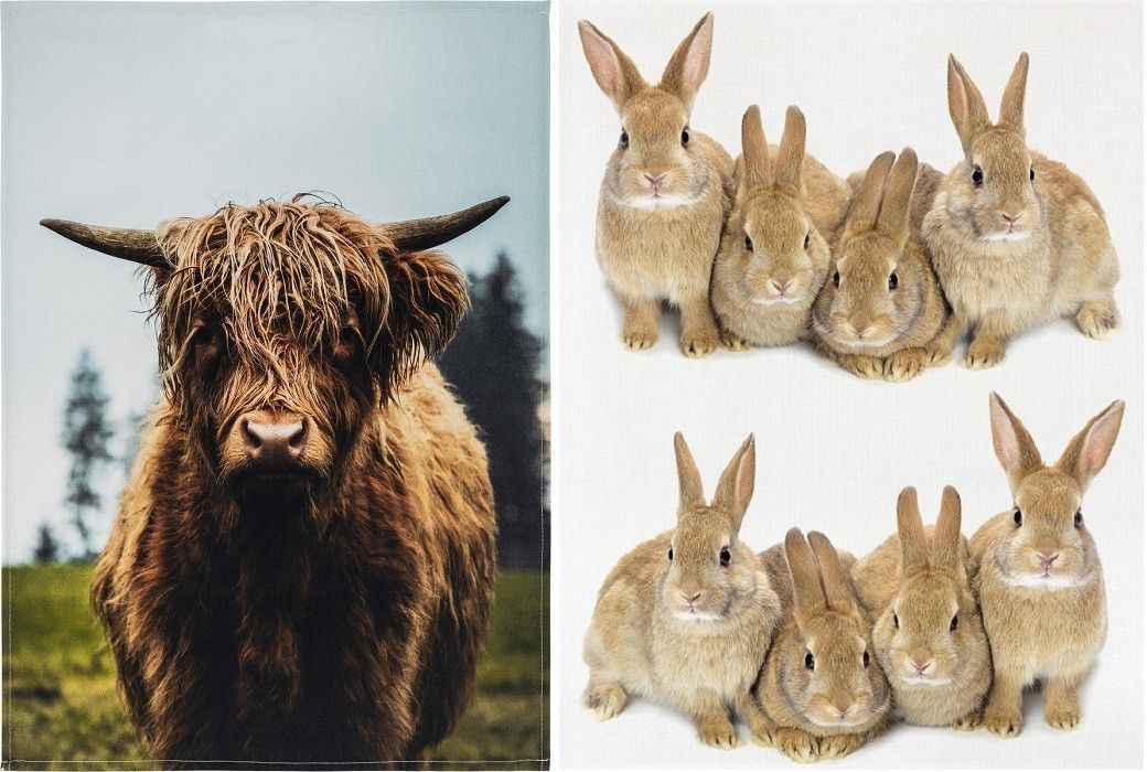 1 Geschirrtuch Tiere, Hasen o. Galloway Rind, Geschirrtücher Mitbringsel Geschenkidee