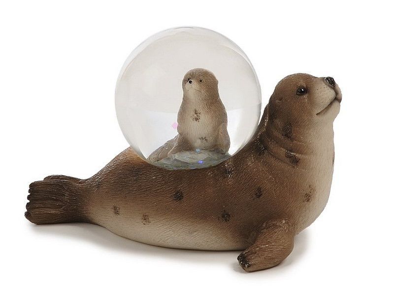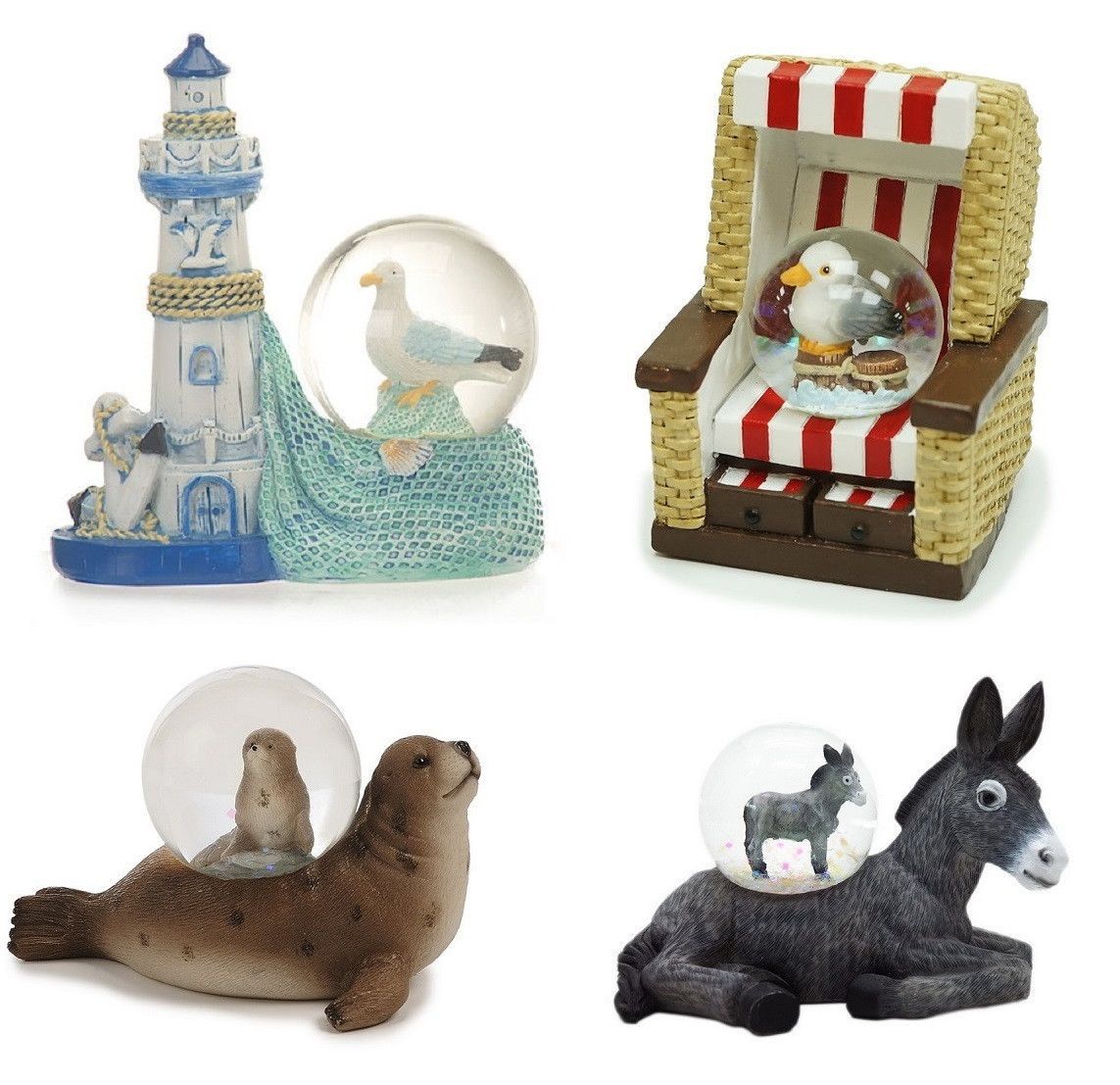 1 Glitzerkugel Leuchtturm Strandkorb Möwe Robbe Esel Schneekugel Urlaub Schneekugeln