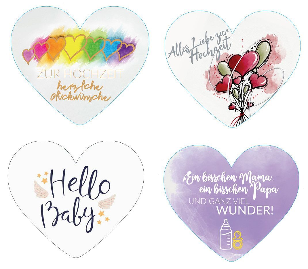 1 Herz Karte, 21x18cm Glückwunschkarte Hochzeit Geburt Taufe Postkarte Ansichtskarte