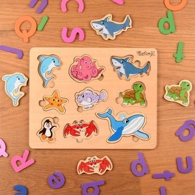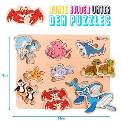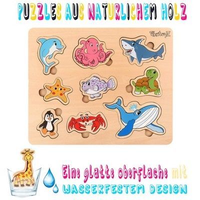 1 Holzpuzzle Meerestiere Montessori Lernspiel ab 1 Jahr