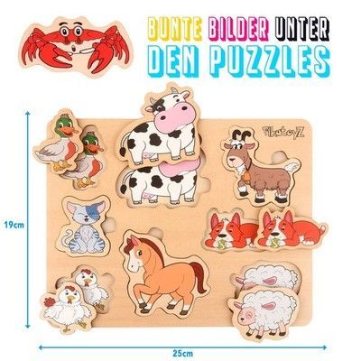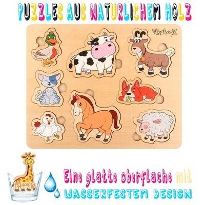1 Holzpuzzle mit Bauernhoftieren Montessori Lernspiel für Kinder ab 1 2 3 Jahre
