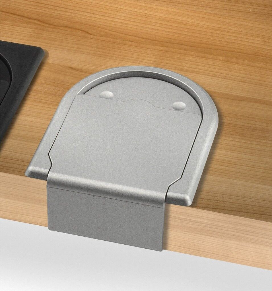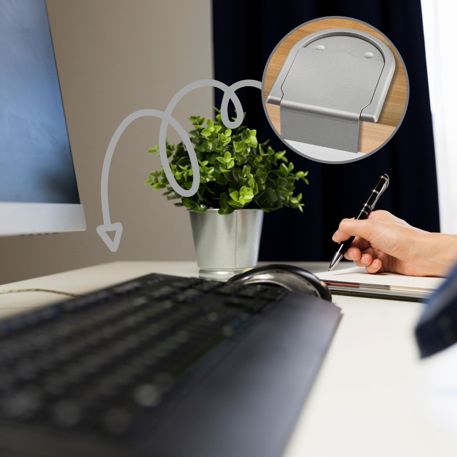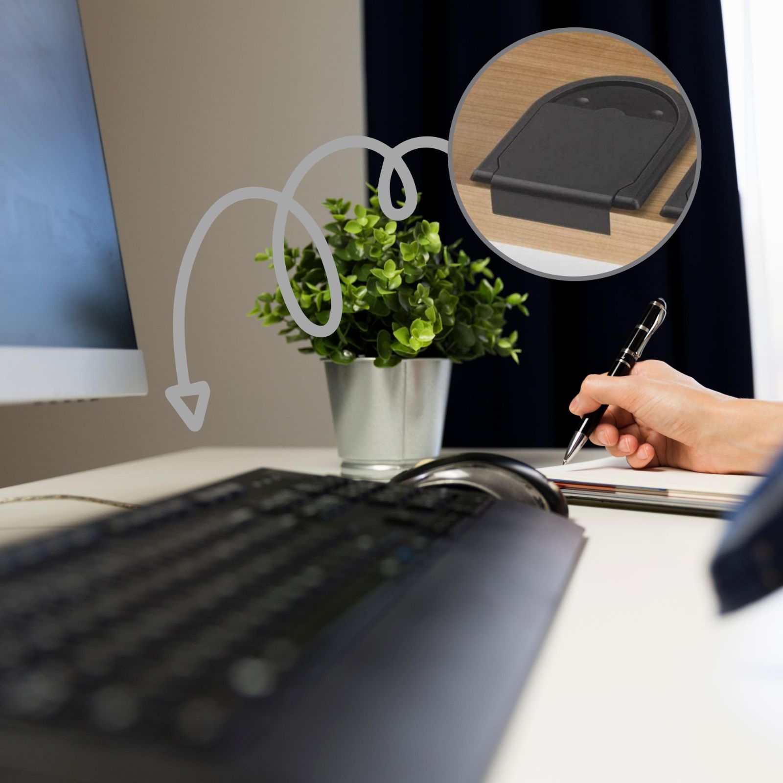 1 Kabeldurchführung/ Kabeldose, Montage an Tischkanten, Grau & Schwarz, Kunststoff