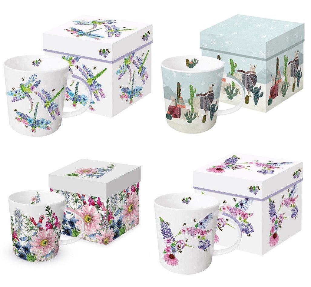 1 Kaffeebecher, Lama, Kolibri oder Blumen mit Geschenkbox, Henkelbecher Tier Tasse