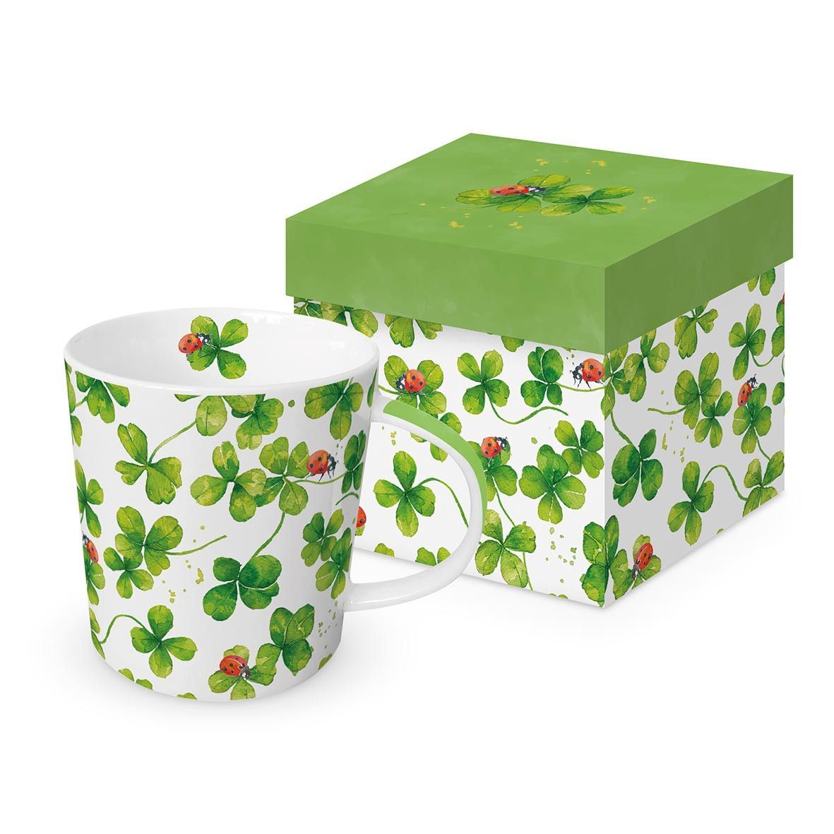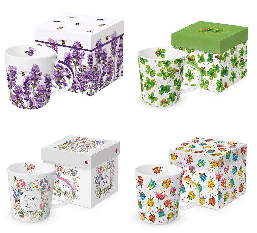 1 Kaffeebecher, Lavendel o. Klee mit Geschenkbox, Bienen Marienkäfer Glück Blumen