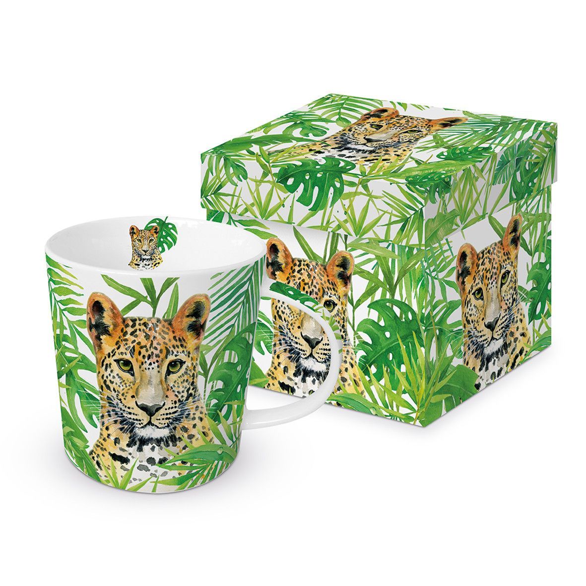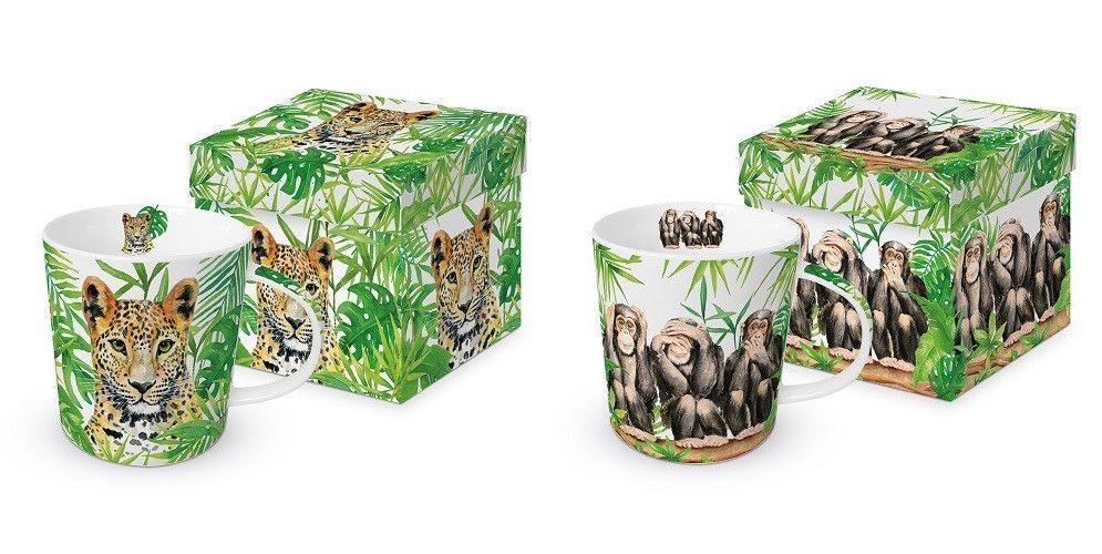 1 Kaffeebecher, Leopard oder Affen mit Geschenkbox, Henkelbecher Tasse Tiere Tier