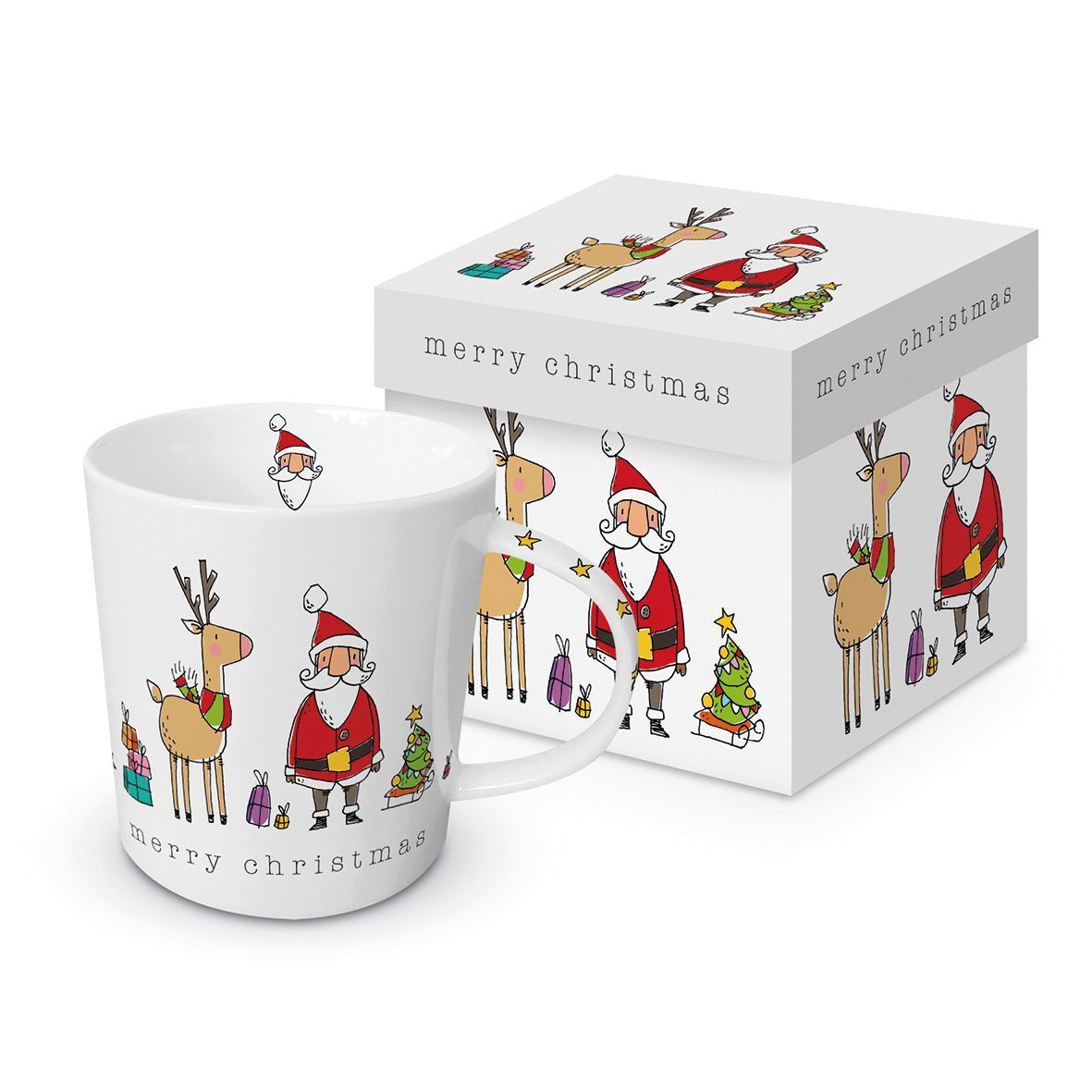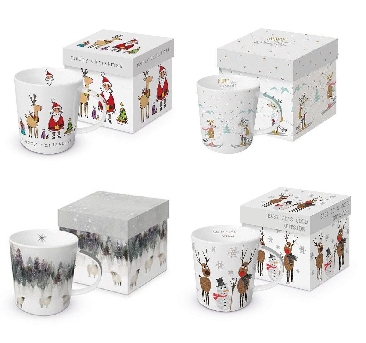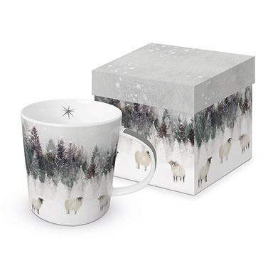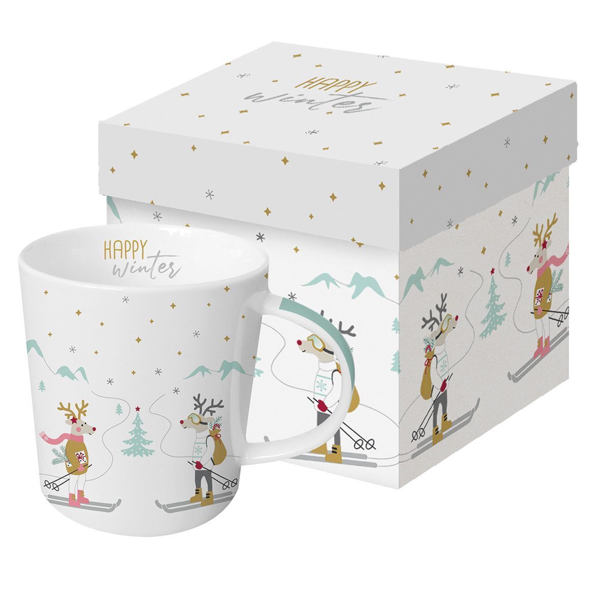1 Kaffeebecher, Weihnachten mit Geschenkbox, Hirsche Ski Schafe Henkelbecher Tasse