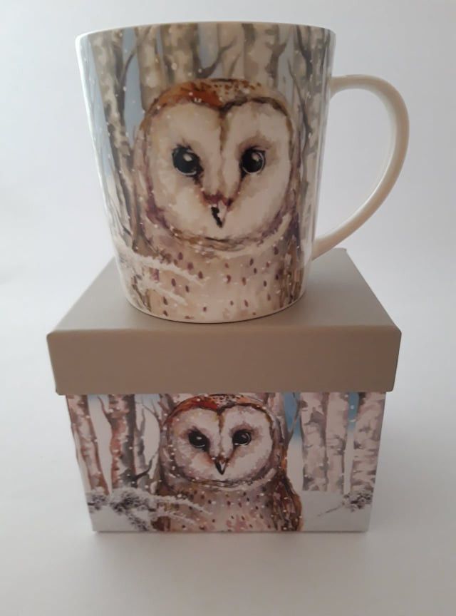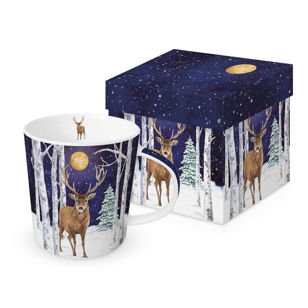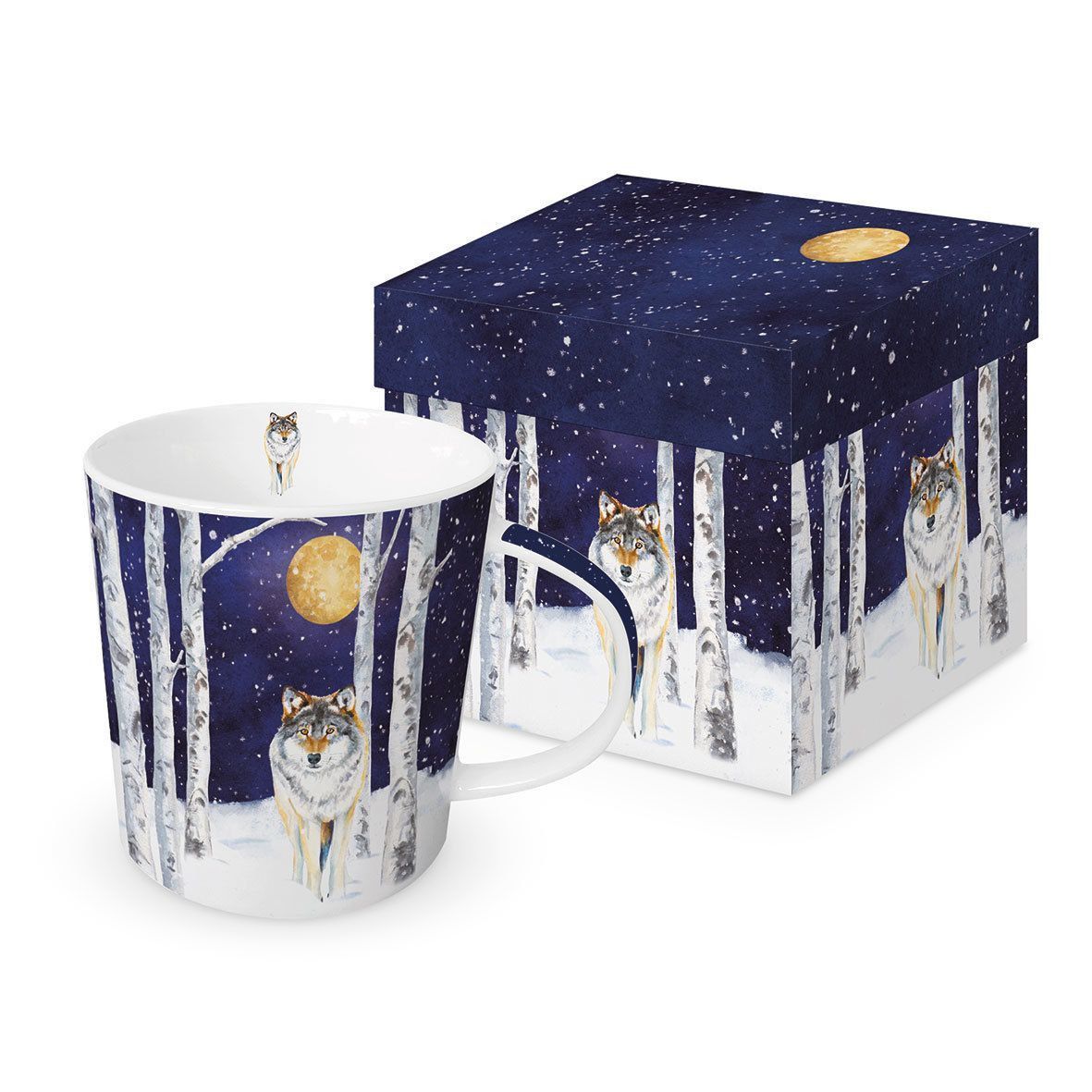 1 Kaffeebecher, Wolf, Hirsch, Schleiereule o. Fuchs, in Geschenkbox, Waldtiere Tier