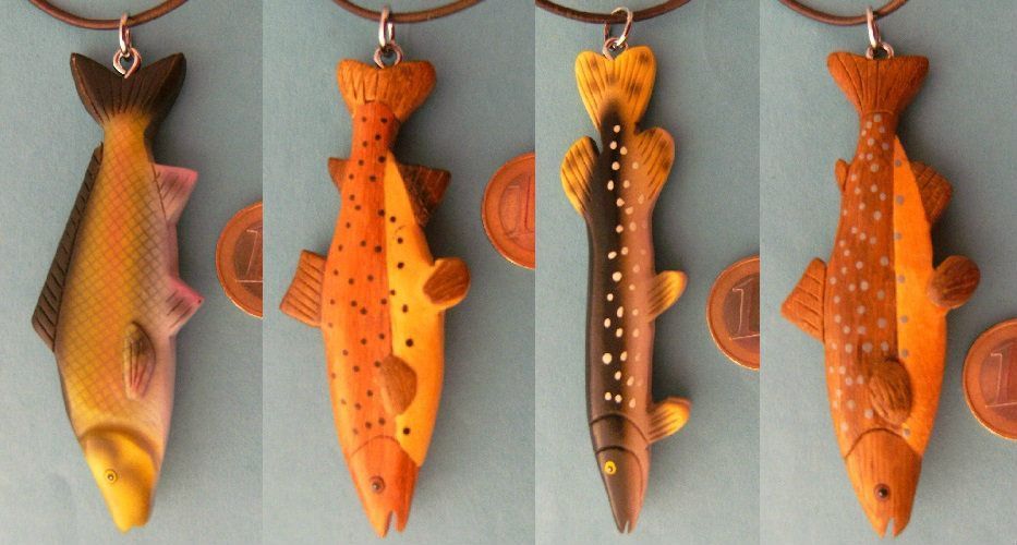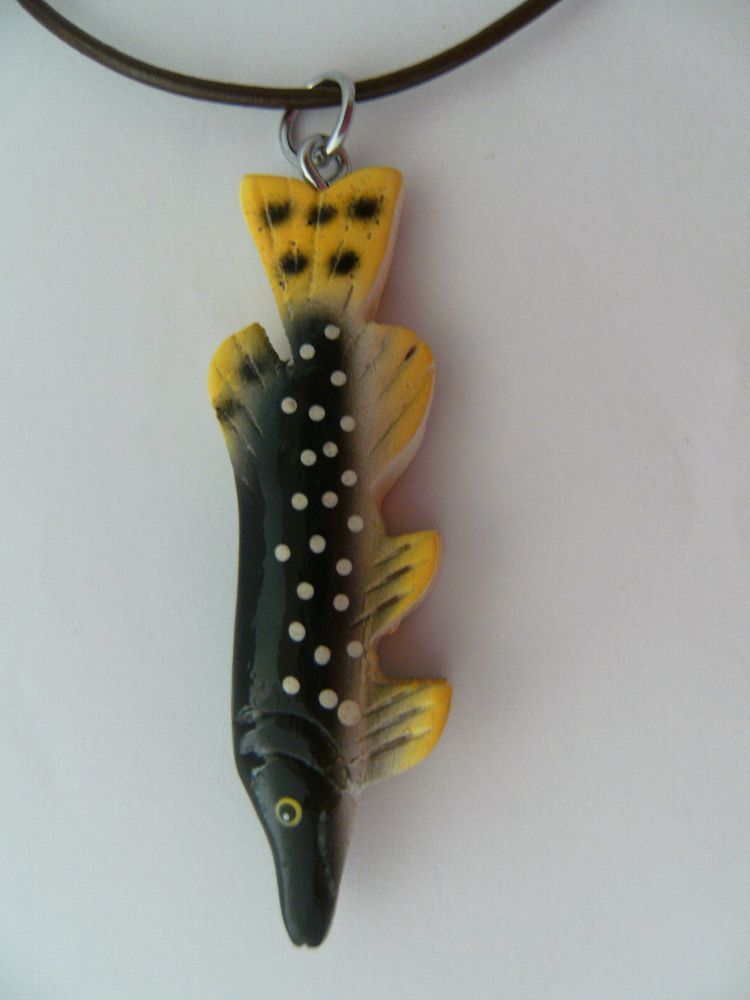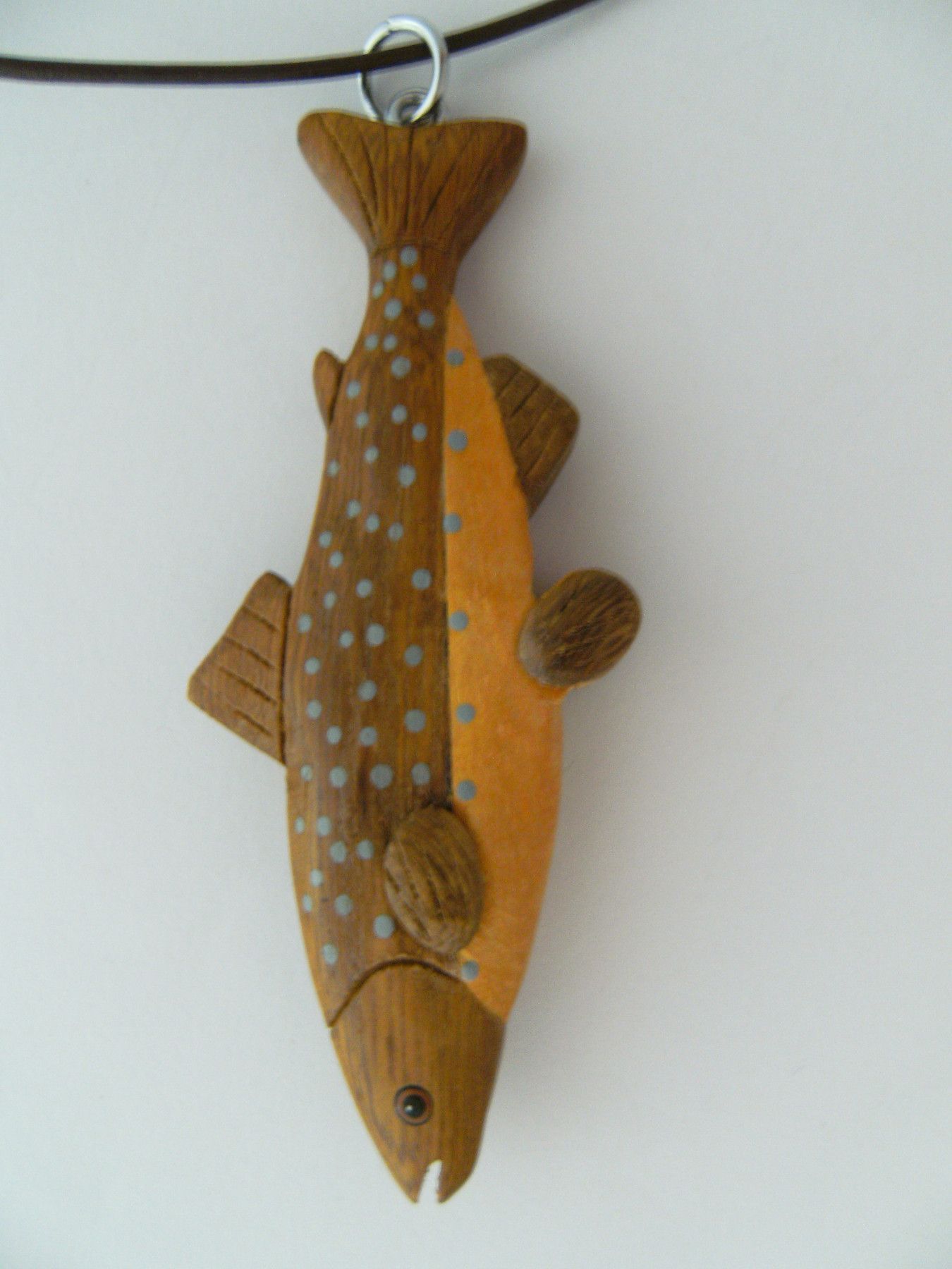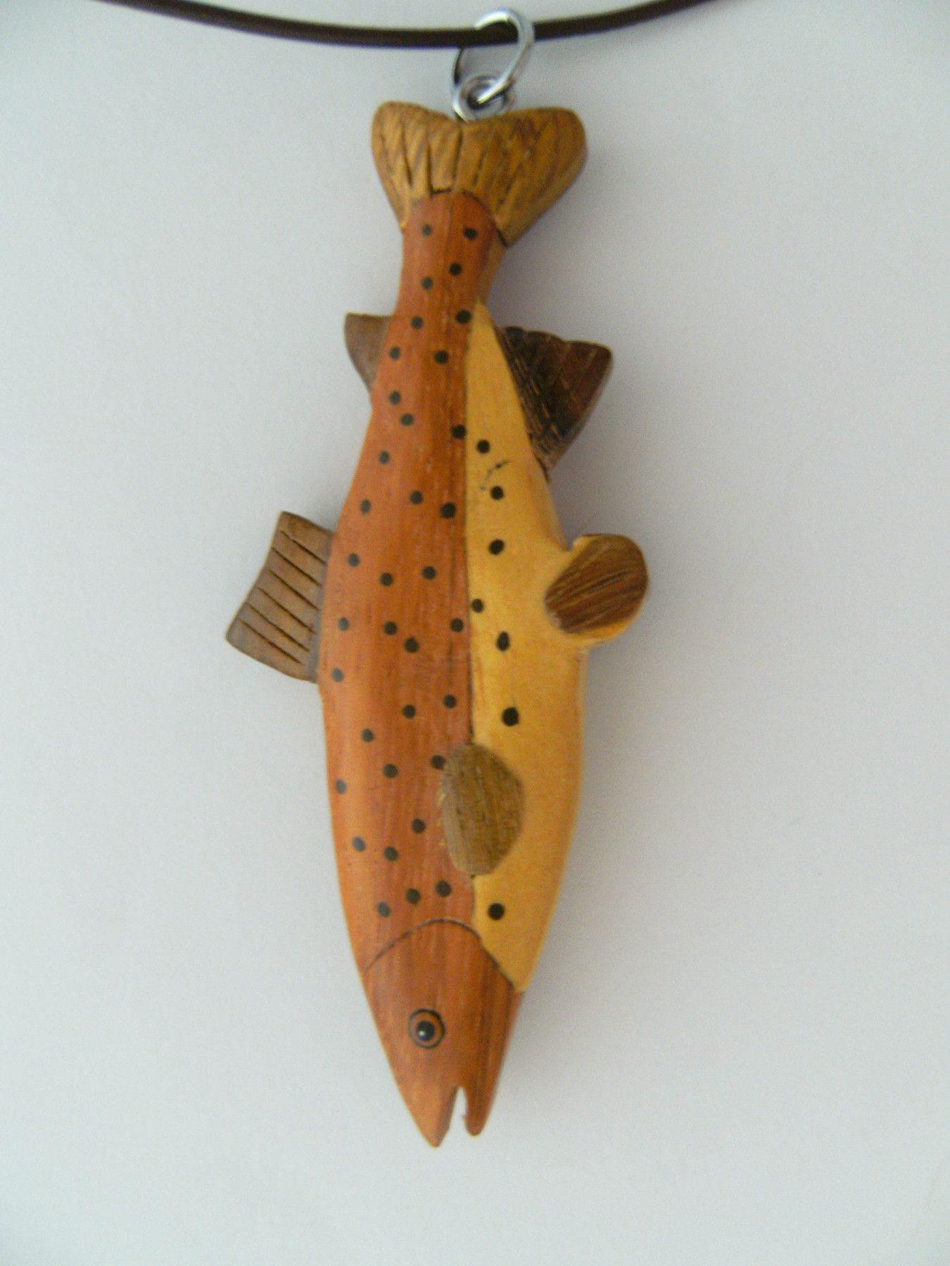 1 Kette Fische Holzanhänger Ketten Modeschmuck Lederband Holzkette Tiere Angler
