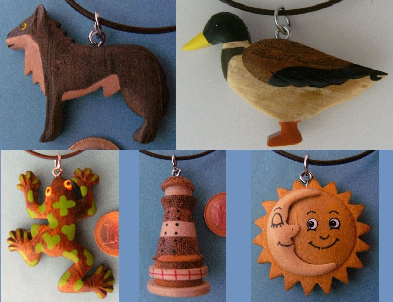 1 Kette Holzanhänger Ketten Modeschmuck Lederband Holzkette Tiere Turm