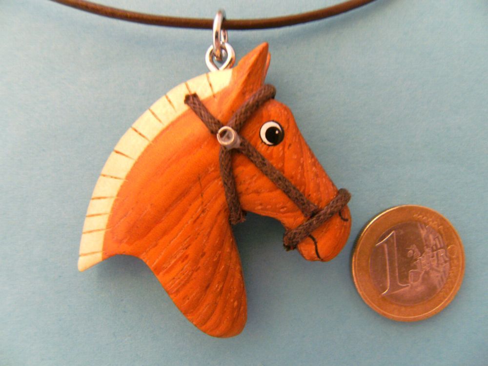• Kette Pony Pferd Holzanhänger Ketten Modeschmuck Lederband Ponys Tiere Tier