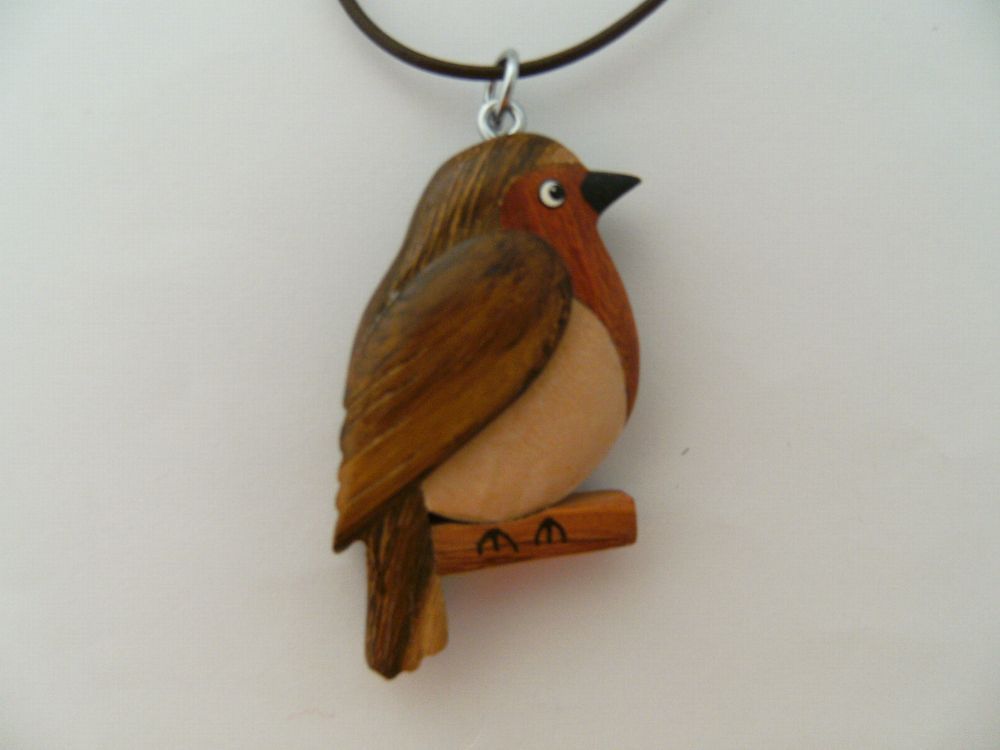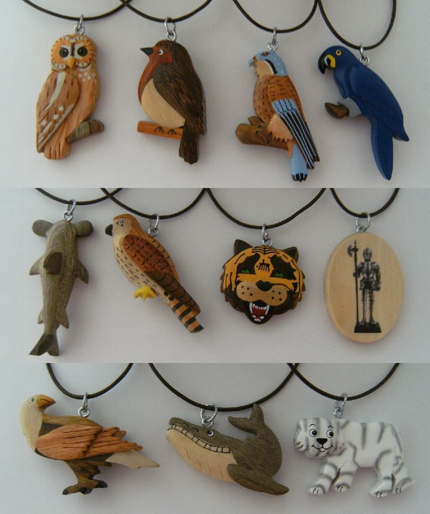 1 Kette Holzanhänger Ketten Modeschmuck Lederband Holzkette Tiere Zoo Vogel