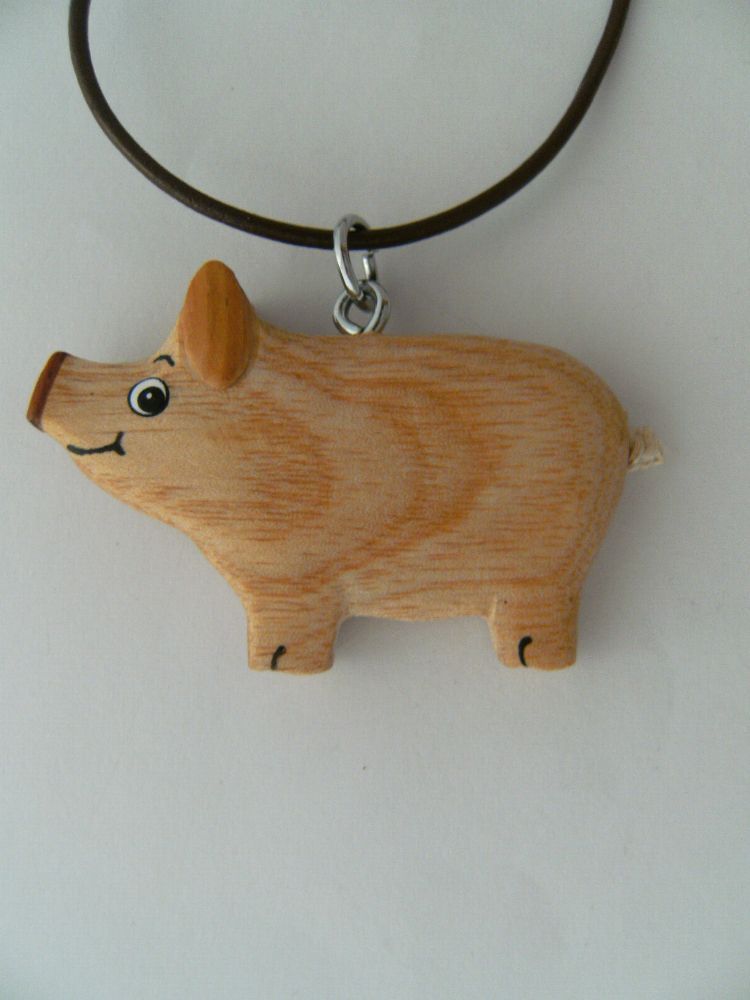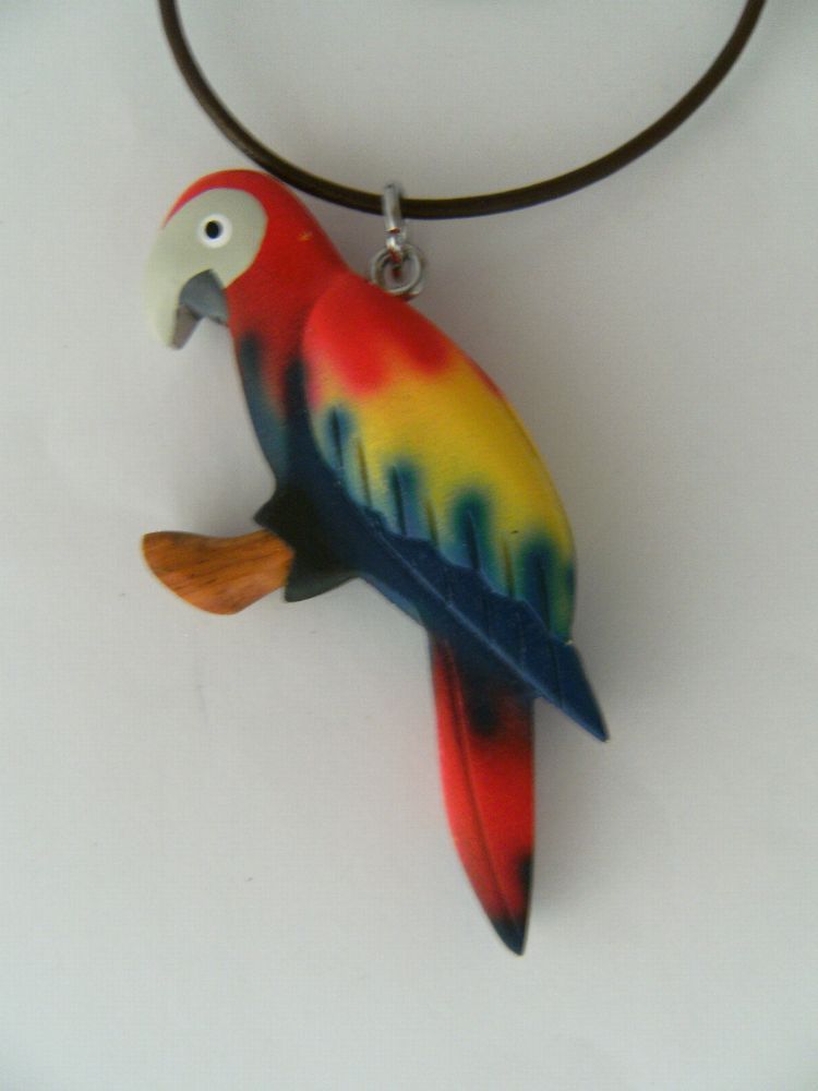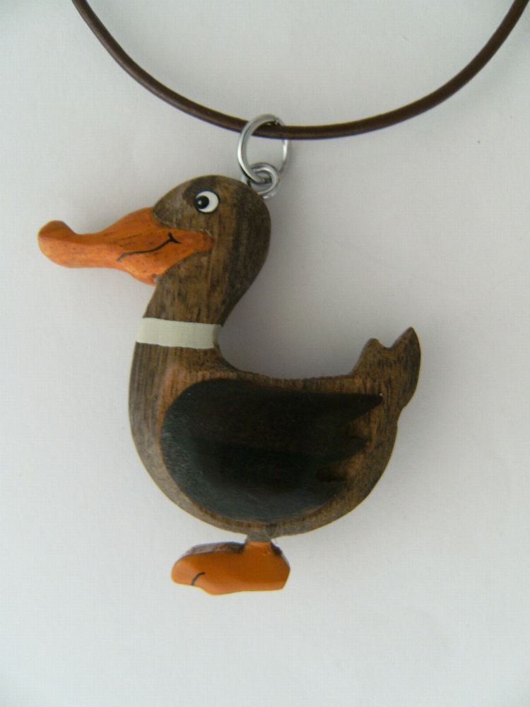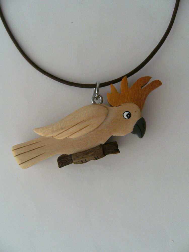 1 Kette Holzanhänger Ketten Modeschmuck Lederband Holzkette Tiere Zoo Vogel
