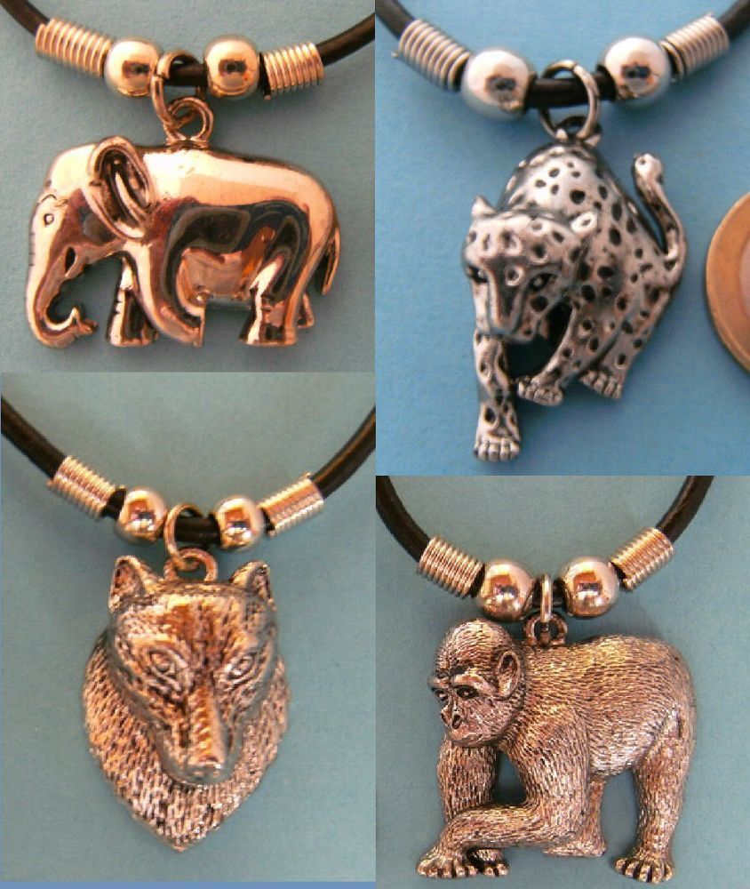 1 Kette mit Anhänger Wildtiere Ketten Modeschmuck Zootiere Affe Wölfe
