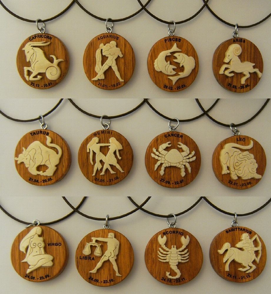 1 Kette Sternzeichen Holzanhänger Ketten Modeschmuck Lederband Holzkette