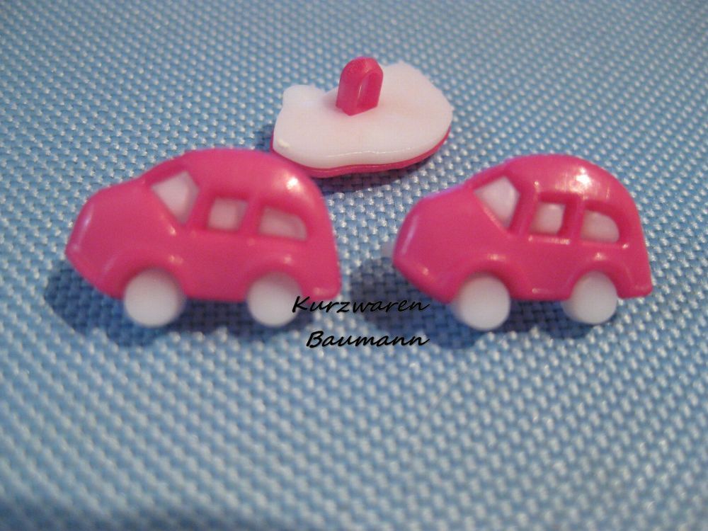 1 Kunststoff Kinderknopf Auto pink 18x16x8mm Öse 3mm Nr 7