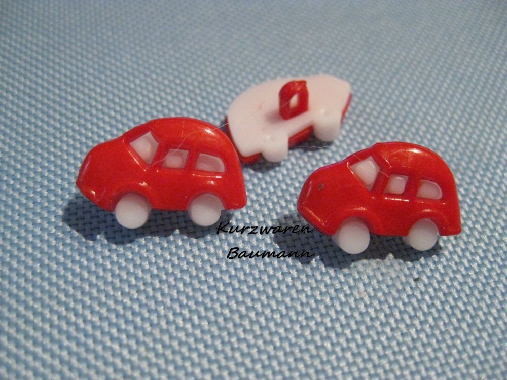 1 Kunststoff Kinderknopf Auto rot 18x16x8mm Öse 3mm Nrb16