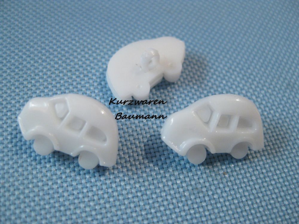 1 Kunststoff Kinderknopf Auto weiß 18x16x8mm Öse 3mm Nr 11