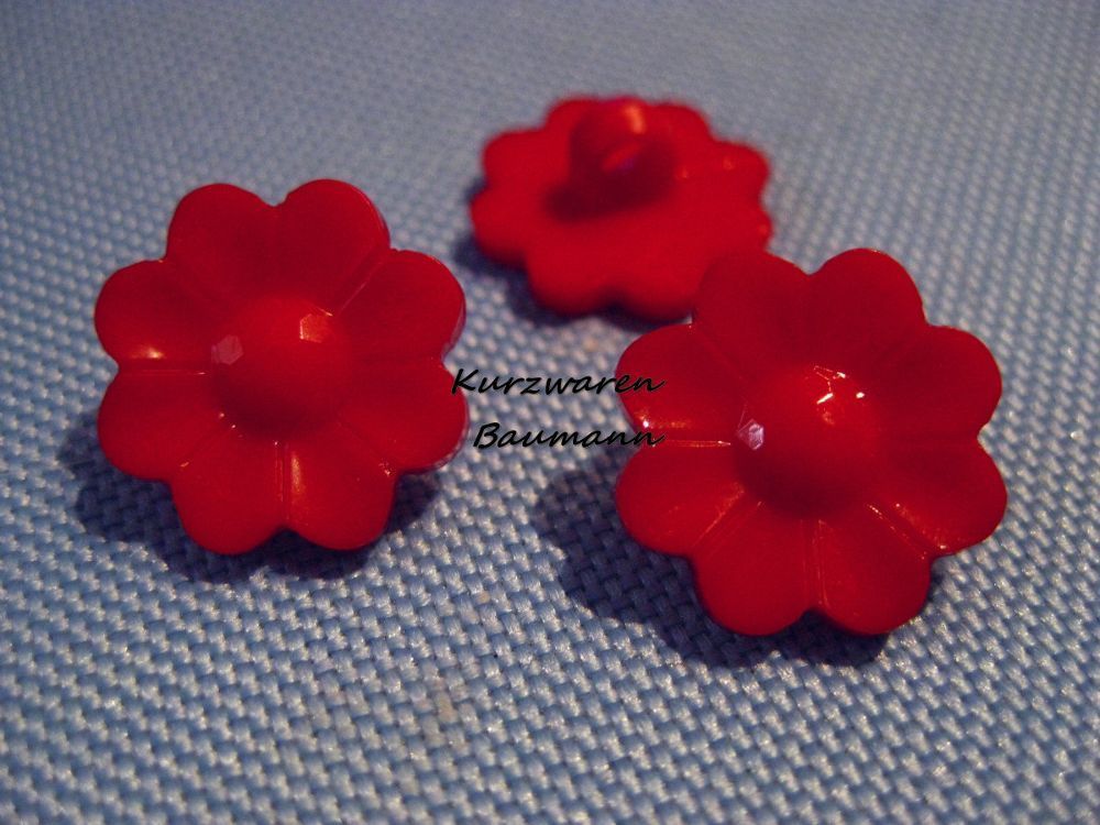 1 Kunststoff Kinderknopf Blume rot 16x7mm Öse 3mm Nr 18