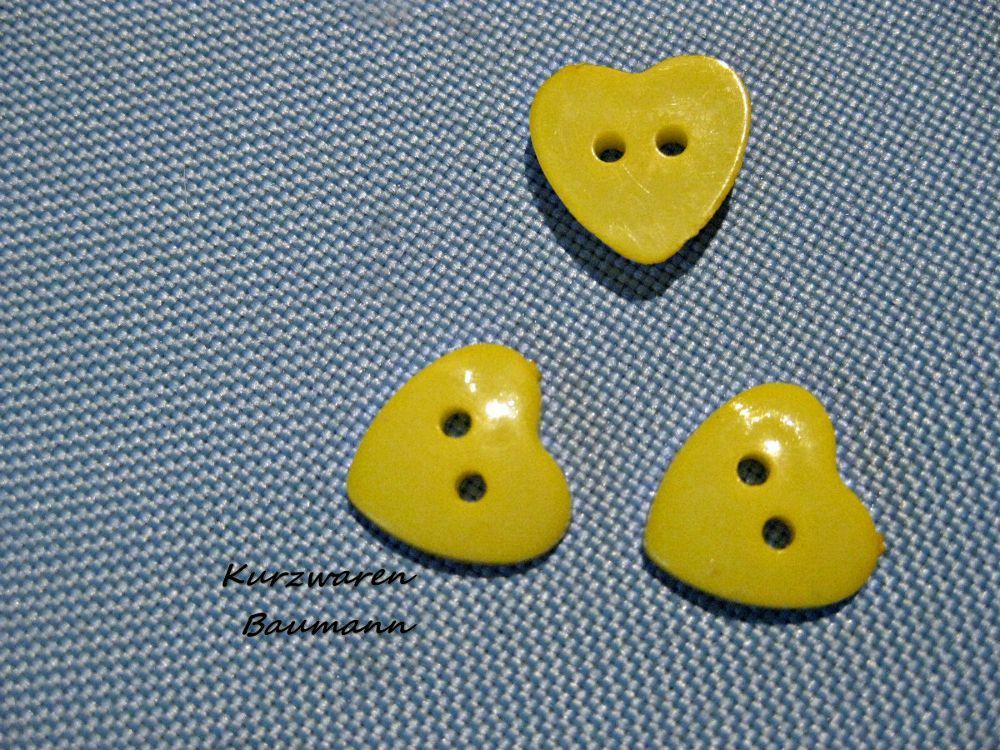1 Kunststoff Kinderknopf Herz gelb 14x11x2mm 2 Loch 2mm Nr 65