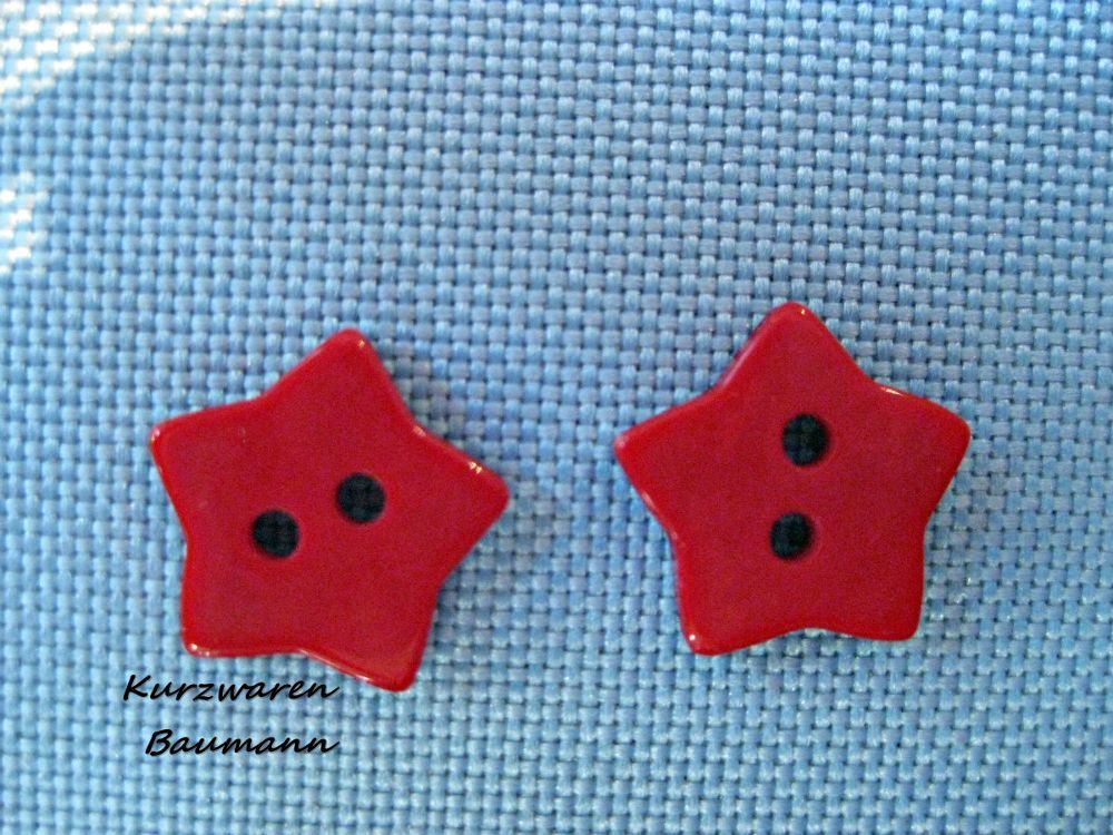 1 Kunststoff Kinderknopf Stern rot 12x2mm 2 Loch 3mm Nr 79