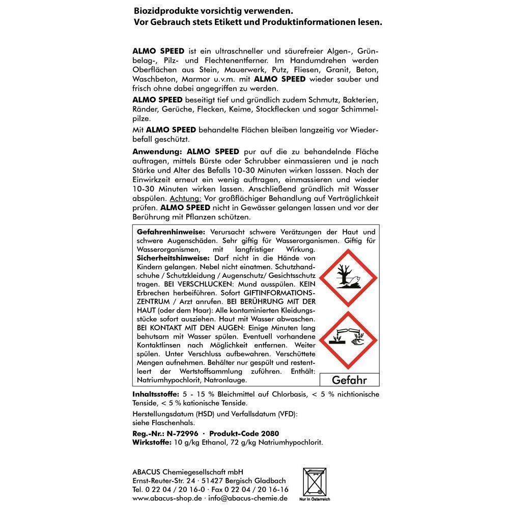 1 L ALMO SPEED Flechtenentferner Grünbelagentferner Algenentferner