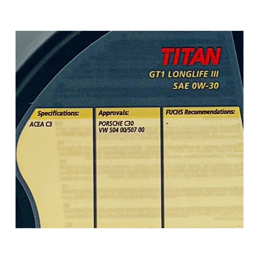 • 5 L Fuchs Titan GT1 Longlife III 0W-30 | VW 504 00/507 00 | Porsche C30
