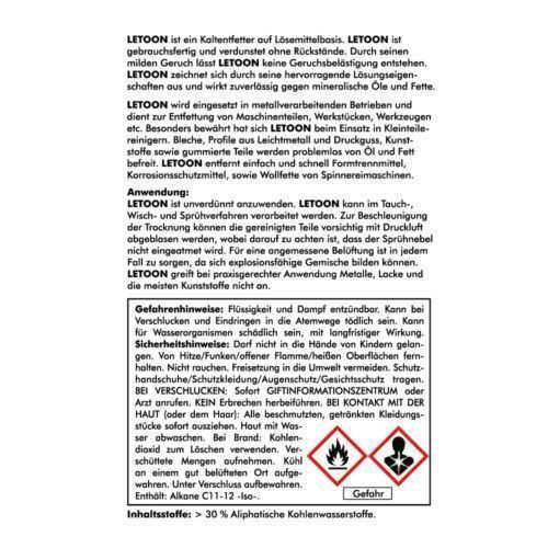 1 L LETOON Kaltentfetter Entfetter Lösemittel Entwachser