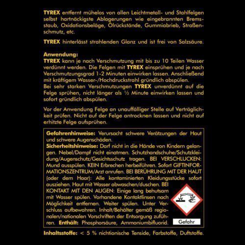 1 L Tyrex Felgenreiniger Konzentrat Stahlfelgen Alu Felgen Reiniger