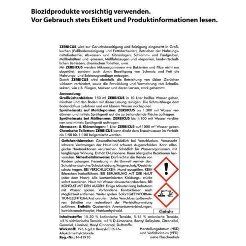 1 L Zerbicus Großküchenfettlöser Kantinen Reiniger Geruchsvernicht