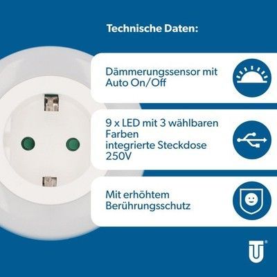 1 LED Nachtlicht Orientierungslicht 3 Farben Dämmerungssensor