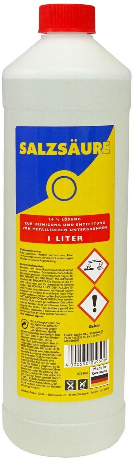 1 Liter Wilckens Salzsäure zum beizen, Reinigen von Kalkrückständen auf Fliesen