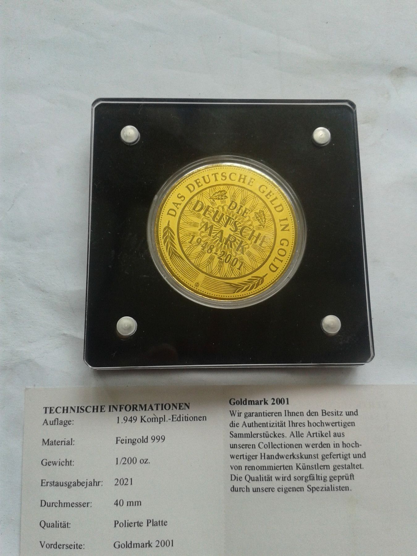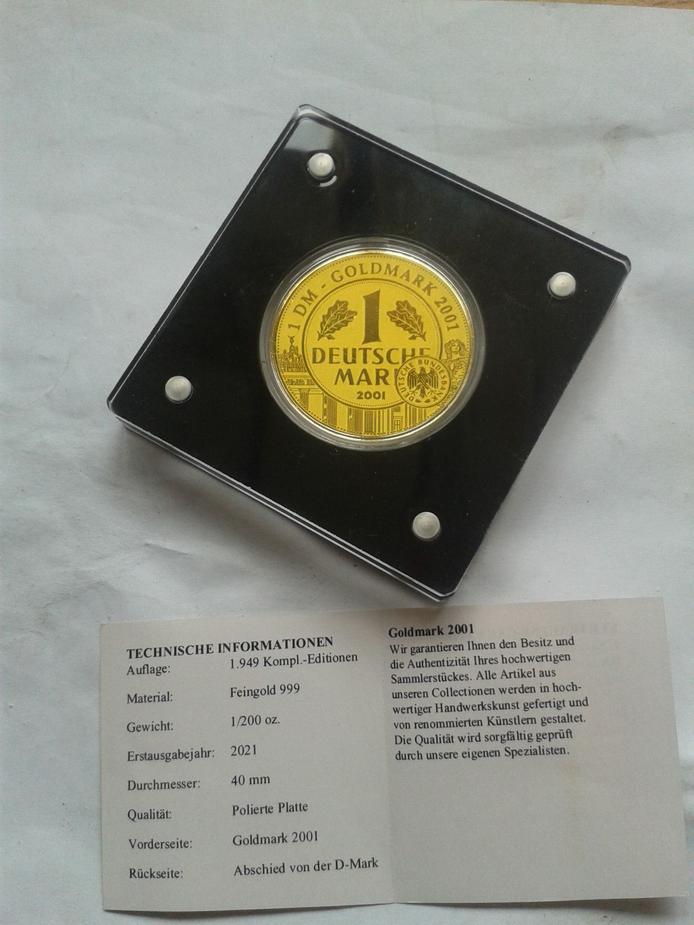 1 Mark Goldmark als Medaillenprägung, 1 200 Unze 999er Gold in Münzdose, mit Zertifikat bei Fragen: