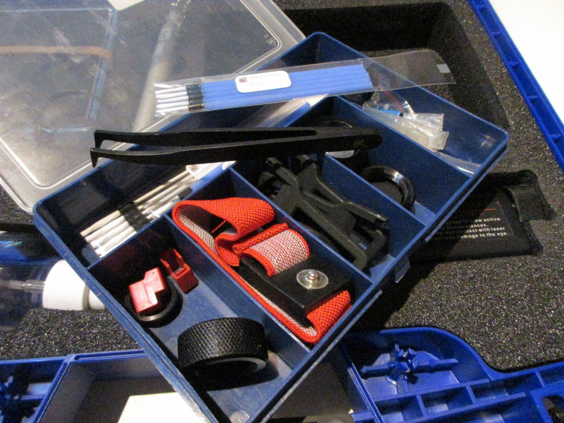 - der Koffer beinhaltet einen Spezial Laserpointer der Laserklasse 3R,wird nur an Gewerbebetriebe mit einem Laserschutzbeauftragten verkauft,nicht an Privatpersonen.