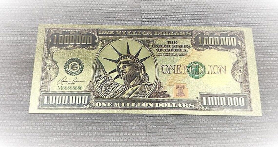 1 Million Dollar USA Banknote - 24 K vergoldet Folie Nachdruck - sehr selten Technische Information zum Artikel Material: vergoldet Größe: original Größe Erhaltung: Neu Verpackung: Folie Das ideale Geschenk oder natürlich auch zum selber sammeln Natürlich handelt es sich nicht um echtes Geld
