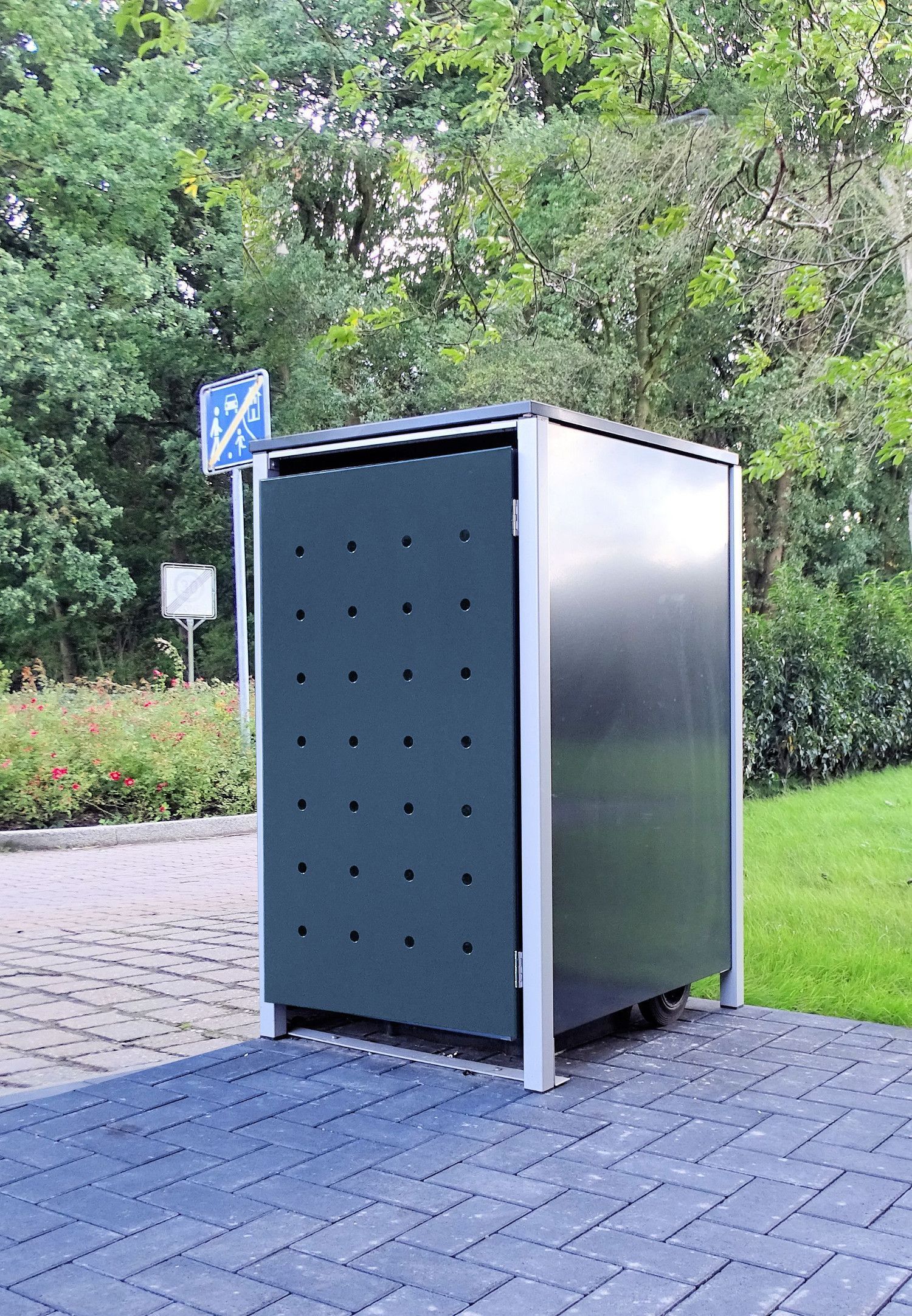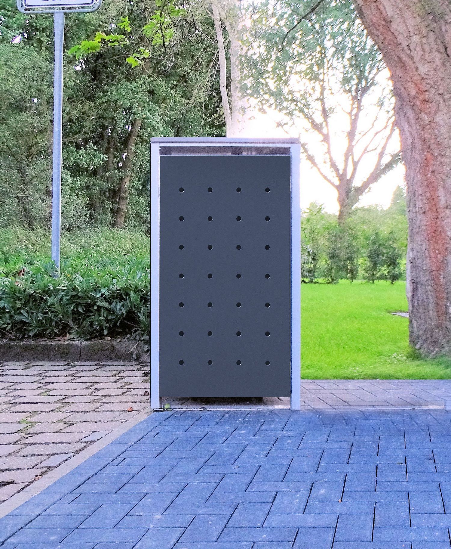 1 Mülltonnenbox Modell No.1 Anthrazitgrau für 240 Liter Mülltonnen / witterungsbeständig durch Pulverbeschichtung / mit Klappdeckel und Fronttür