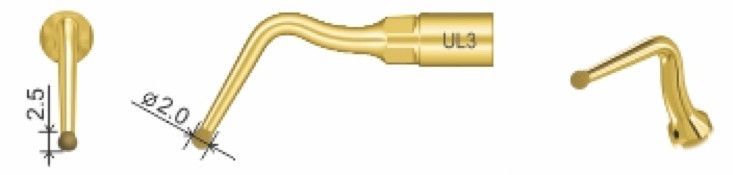 1 Osteotomie Instrument UL3 kompatibel mit Mectron* Piezosurgery (OT5) mikrometrische Osteotomie oder Osteoplastik - atraumatisch, zur Osteotomie und Osteoplastik in dünnen Knochen oder in der Nähe empfindlicher anatomischer Strukturen - Diamantkörnung ca. 100µm - autoklavierbar 135°C Diam