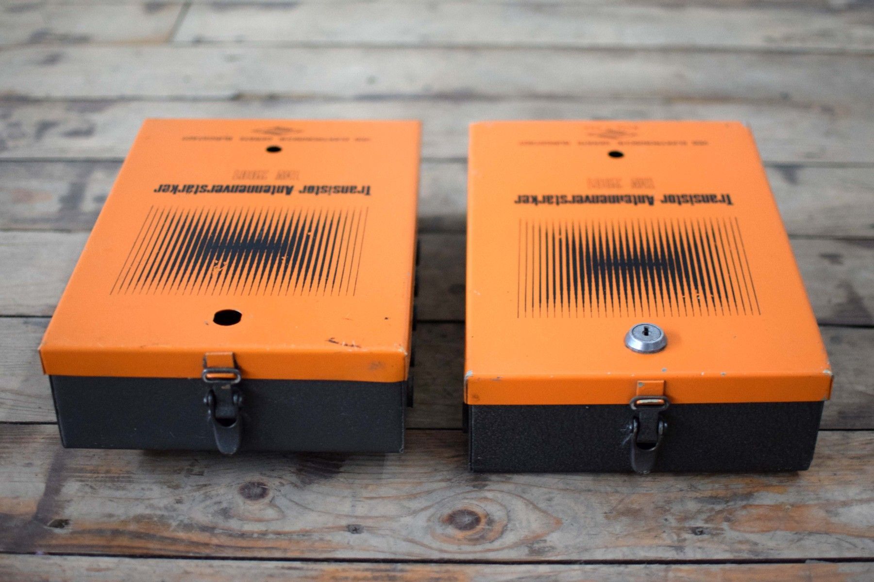 1 Paar 2 Stück Kasten Transistor Antennenverstärker TAV 2001 leer Metallkasten DDR