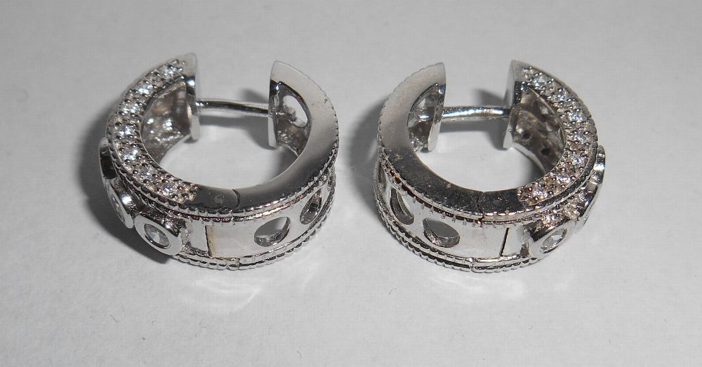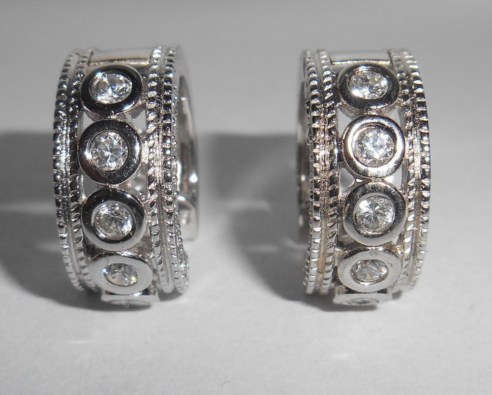 1 Paar Creolen 925er Silber rhodiniert mit klaren Zirkonia #1192