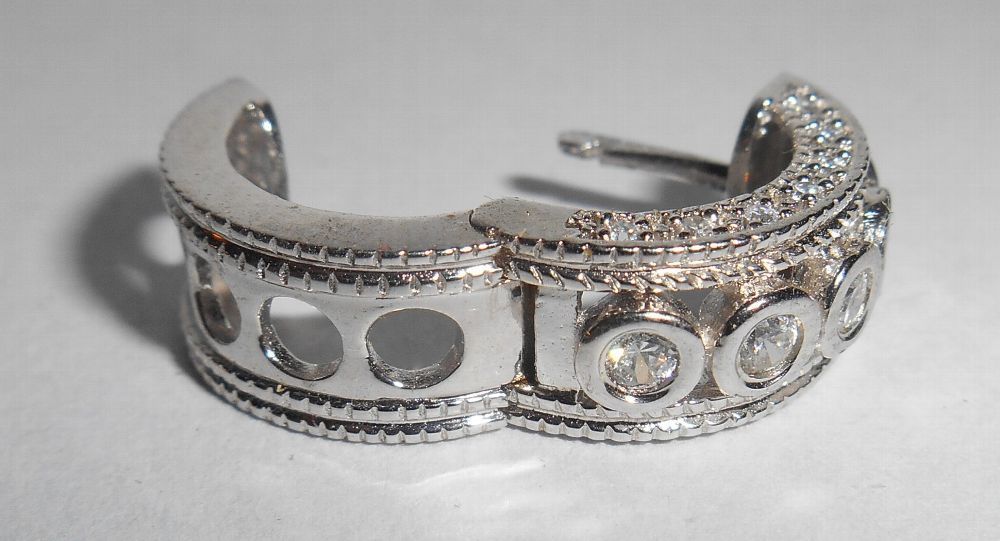 1 Paar Creolen 925er Silber rhodiniert mit klaren Zirkon Größe: 17 x 7 x 3 mm Gewicht: 8 g Hersteller: Guel Steine: Zirkon Farbe: Klar Das Silber ist rhodiniert Neuware
