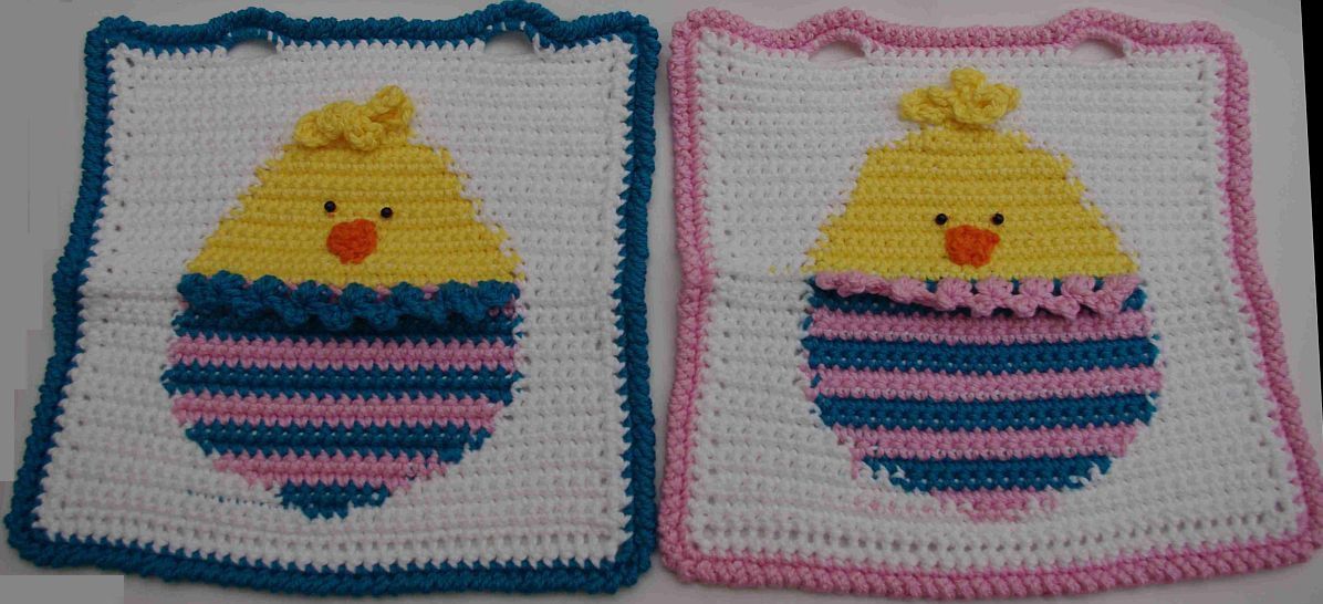 1 Paar gehäkelte Topflappen - "Oster-Küken"