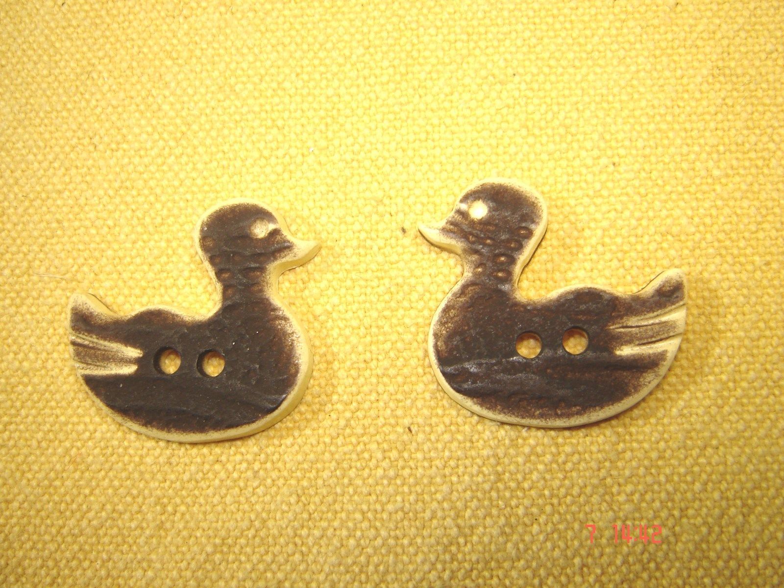 Trachtenknopf Zierknopf aus Kunststoff Paar Entchen fürs Revers oder als Deko für Kinderjanker usw als Applikation oder auch als Knopf zu verwenden zum Annähen , wie ein Knopf mit 2 Löchern aus Horn Imitat , also Kunststoff , dunkelbraun die Entchen sind jeweils 3,2x3 cm groß . Bitte sehen Sie sich